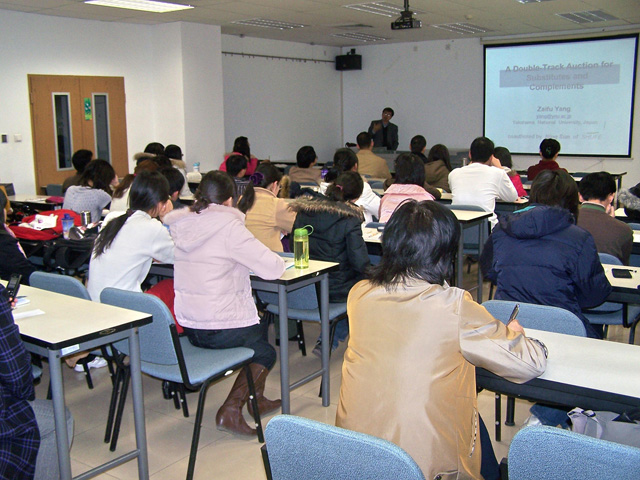 2009年12月25日,应我院邀请,日本横滨国立大学杨再福教授,在北航新主楼A1048作了题为《A model of partnership formation》的精彩报告。我院国际贸易系主任李锐教授主持报告会。