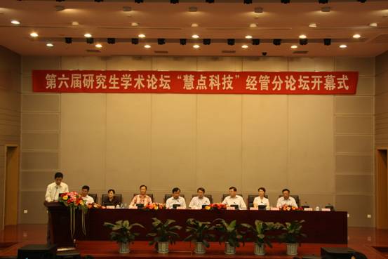 2009年9月14日,北航第六届研究生学术论坛“慧点科技”经管分论坛开幕式,在新主楼第一报告厅隆重举行。经管学院院长兼研究生院常务副院长黄海军教授,院党委书记刘志新教授,副院长杨梅英教授、魏法杰教授、陈向东教授、周宁副教授及企业代表出席开幕式。院研究生指导主任贾国柱教授主持开幕式。