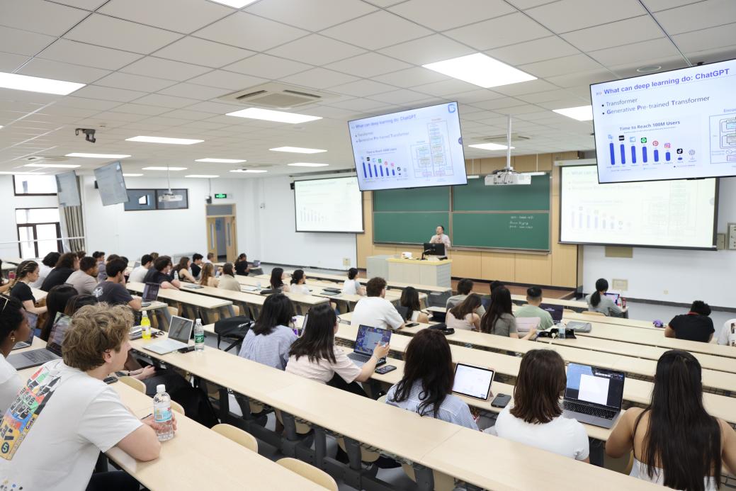 5月13日上午,刘冠男副教授在主M202教室为ESCP学生作题为“深度学习介绍”的讲座。他指出,深度学习极大地推动了人工智能的发展,已经成为近年来最具前景的研究领域之一。他首先介绍深度学习的基本结构,然后讲解卷积神经网络和循环神经网络这两种最经典的深度学习模型,最后分享深度学习的应用案例。