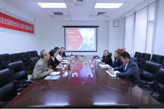 2019年4月8日上午,约克大学舒力克商学院(Schulich School of Business, York University)高等教育中心主任Elena Caprioni博士和亚洲经管项目执行经理刘婕来访,经管学院院长范英教授、北航深圳研究院院长韩立岩教授、经管学院外事助理郝金星副教授以及学院EE中心主任胡鹤参加会谈,双方就推进2018年11月续签的高管培训合作项目进行了深入会谈。