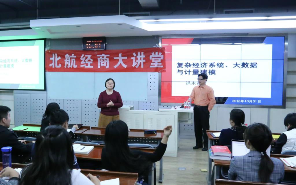 2018年10月31日,美国康奈尔大学经济学与国际研究讲席教授洪永淼教授来到北航beats365亚洲体育投注,做客第25期北航经商大讲堂,他的报告题目是“大数据、复杂经济系统与计量建模”。beats365亚洲体育投注范英院长主持了本次大讲堂。经管学院师生80余人参加了此次报告会。