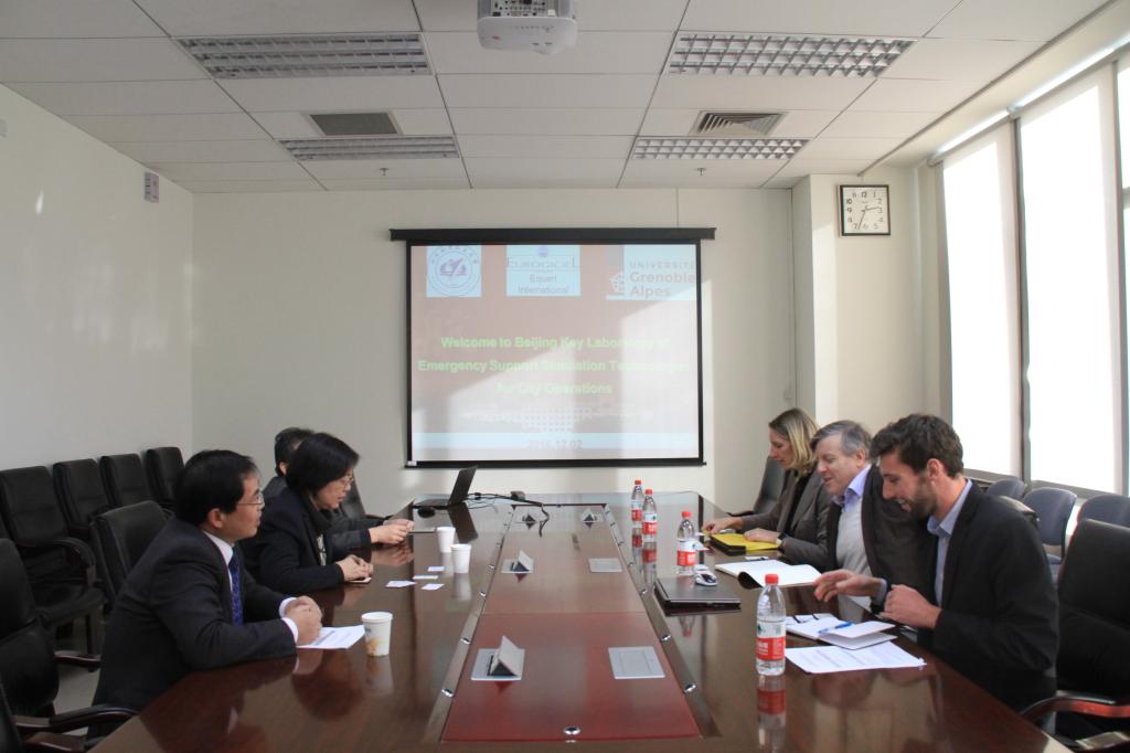 下午,格勒诺布尔大学Karine Samuel教授、法国Equert International公司首席技术执行官Pascal Gavaud先生、法国驻华大使馆科技处项目官员Florent Anon先生访问我院,我院院长范英教授、副院长方卫国教授、周泓教授、韩小汀老师参加了会见。