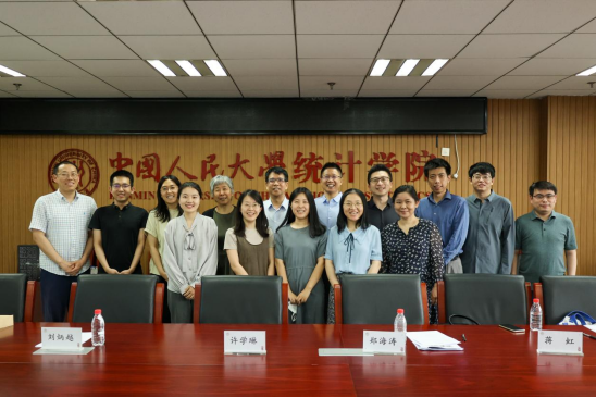 为深入开展学习贯彻习近平新时代中国特色社会主义思想主题教育走深走实,深化高质量党建引领统计学科高质量发展,5月24日下午,经管学院党委书记郑海涛带领数量经济与商务统计系教工党支部教师代表刘炳越、康雁飞、蒋虹、王珊珊等一行7人前往中国人民大学统计学院经济社会统计系开展主题教育调研活动。此次调研重点围绕党建、经济统计学专业本科人才培养、统计学科发展方向等主题,旨在推动经济统计学专业的人才培养和研究水平提升,加强两院在党建和学科发展等方面的合作与交流。