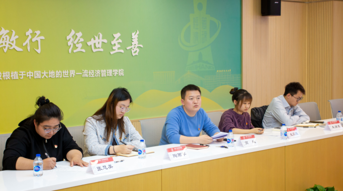 随后,学生党支部书记围绕学习贯彻习近平新时代中国特色社会主义思想和党的二十大精神,落实基层党建重点任务,加强支部班子和制度建设,“学习日”“三会一课”等组织生活开展情况以及支部工作取得的成效、存在的问题、加强和改进工作的思路措施等,依次进行年度工作述职汇报。其中,本科2008(一)党支部书记王卓雅分享了支部全面贯彻学习党的二十大精神、把握主题教育目标要求的具体学习情况;博士BY2008党支部书记郑舒文分享了支书讲党课的心得体会,以及通过将理论、实践、案例有机融合实现科研和党建深度融合的经验;会计纵向学生党支部书记高美琪分享了通过开展六次“联学共建”活动提升支部凝聚力、通过成立红歌宣讲团传播经管声音、激发奋进力量的支部特色;硕士SY2208(二)党支部书记钟锐分享了“理论体系构建、施政逻辑探源、重点知识记忆”的三步走讲党课思路;本科2108党支部书记尹滢滢分享了“共读2本书、同览1处景、共建0障碍、智闯8个关”的创意党建活动等。