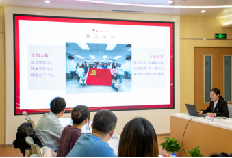 在庄严的国际歌声中,述职大会拉开了帷幕。学院党委副书记高超指出,本次学生党支书述职大会,既是对过去一年工作进行梳理总结的载体,更是强化学生党支书纵向交流的契机。希望各个学生党支书能够互相交流工作心得、互相学习优秀做法,未来进一步将党建和学习生活融合推进,在提升党支部建设质量、提高党员的获得感和仪式感上获得更大成效。