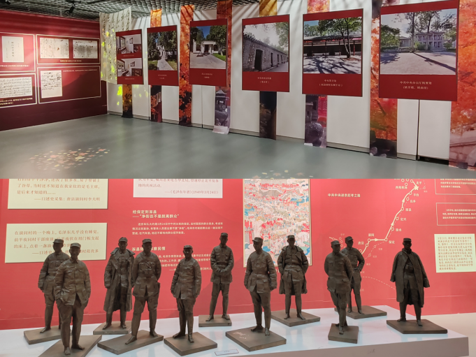 展览中,红星照耀中国、走我们自己的路、梁启超三个雕塑和太行山11位人物的组雕展现“进京赶考”精神在不同历史时期的传承与发展凝聚起为实现中华民族伟大复兴而努力奋斗的强大动力。党员们认真倾听讲解,不时驻足观看、交流感悟,深刻体会到了革命先辈们为党、为祖国、为人民付出的巨大牺牲和无私奉献。