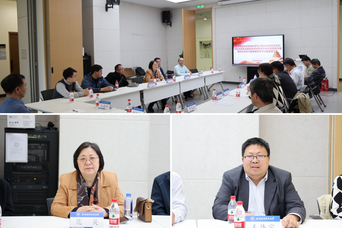 为深入贯彻落实党的二十大关于科技创新体系建设的战略部署,深化基层党建与学科发展融合机制,2025年4月9日下午2点30分,北航beats365亚洲体育投注管理科学与工程系教师党支部与宇航学院航天智能科学与技术系教师党支部在沙河校区主楼D409举办党支部互联共建暨顶尖学科与国家级实验平台建设研讨会。beats365亚洲体育投注院长范英,宇航学院书记徐亚军、院长王伟宗,管理科学与工程系教师党支部书记罗开平、航天智能科学与技术系教师党支部书记王可东等共20人参加。