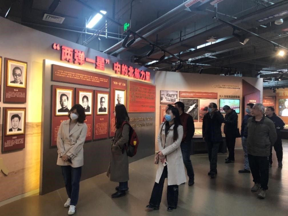在参观“两弹一星”中的北航力量展区时,面对这一解决国家发展难题的关键事件,大家驻足良久,纷纷被前辈们坚定不移、力克万难的爱国情怀所感染,自发展开了“时下如何与国同行”的探讨,从时代精神、当下国家发展需求及新兴科研议题等多方面交换了学习心得与科研感悟。