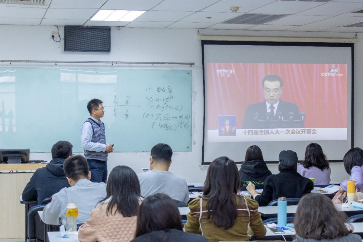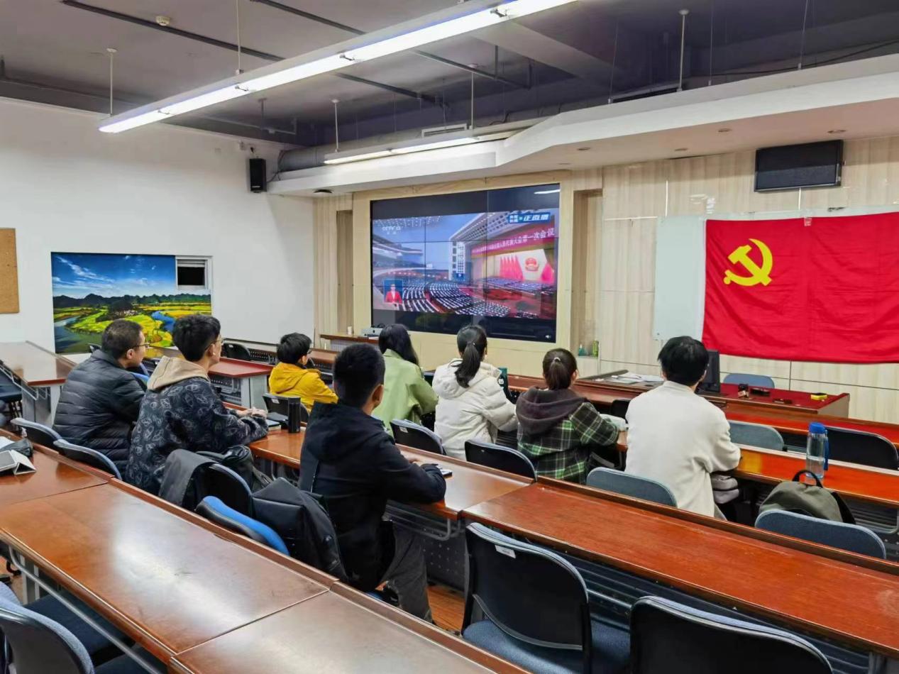 2023年3月5日上午9点,第十四届全国人民代表大会第一次会议开幕,beats365亚洲体育投注组织教职工、党支部、团支部、班级学生以集中收看等多种形式收听、收看第十四届全国人民代表大会第一次会议开幕直播盛况。学院党委书记郑海涛与40余名师生共同收看此次开幕式。