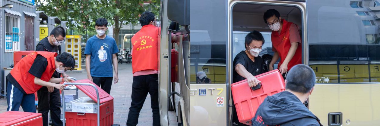 由于疫情防控的需要,学校采取封闭管理,考虑到大运村距离食堂较远,食堂在大运村设置供餐点,提供盒饭售卖服务。beats365亚洲体育投注党员先锋队积极加入疫情防控志愿服务工作,扛起青年的责任,无畏向前,奉献青春,彰显青年一代应有的干劲和担当。学院党委高度重视,党委书记郑海涛现场参与服务工作,党委副书记高超带领党员、积极分子一起帮助学校食堂运送餐点。
