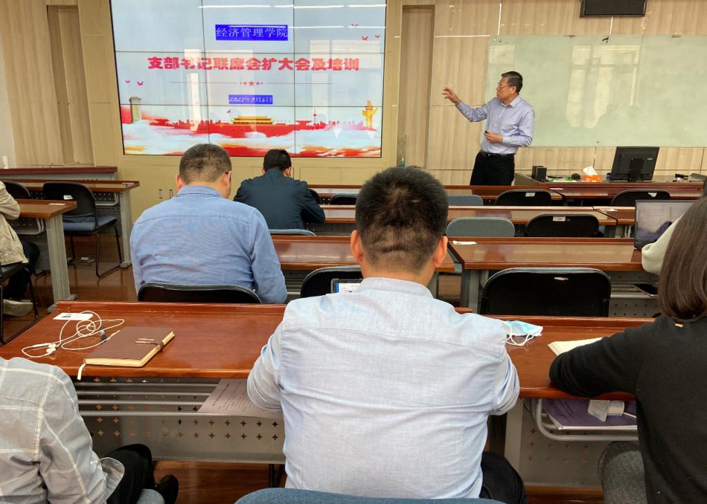 2021年5月6日中午12时,beats365亚洲体育投注在A622教室召开支部书记联席会扩大会议,传达学校分党委书记联席会精神,学院分党委书记刘志新主持会议,全体教工支部委员、学生工作负责人和专职组织员近40人参加会议。