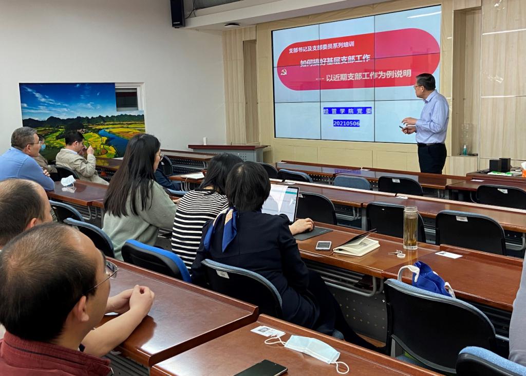 2021年5月6日中午,beats365亚洲体育投注在A622教室开展教工党支部书记培训,学院分党委书记刘志新主持会议,全体教工支部委员、学生工作负责人和专职组织员近40人参加会议。