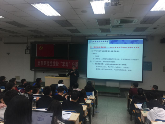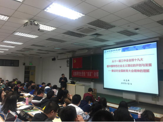 单伟老师对北航研究生党校“求真”分部的由来以及历年培养的成果加以介绍,强调“求真”党校的办学理念和培养宗旨。单老师还并对本次党课的主讲人北航经管学院党委书记刘志新教授进行介绍,不仅介绍了刘书记的科研成果,还介绍了其担任经管学院党委书记以来带领经管学院在党建方面取得的优异成绩。