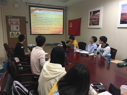 第二项议程,党支部全体成员进行“反腐倡廉每季一课”2018年第三季度的学习汇报。陈晨曦同志分享了学习《赵乐际同志在省市区纪检监察工作座谈会上的讲话精神传达提纲》的内容,提出党员应遵守党的纪律,牢记为人民服务的宗旨,密切联系群众,认真学习专业知识,做优秀大学生的观点。谭滨锴同志做了题为《党的政治建设》的学习分享,介绍习近平总书记对推进中央和国家机关党的政治建设作出的重要指示,带头维护党中央权威和集中统一领导,建设让党中央放心、让人民群众满意的模范机关。全体党员对两个汇报进行了集中讨论交流,积极发表观点。
