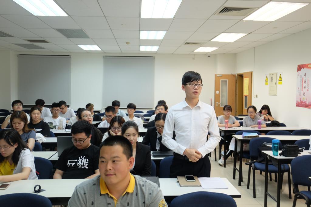 丁得彬和徐璐同志作为第一组主讲人拉开了此次党课的序幕,该学习小组的展示主题为正确认识时代责任和历史使命。丁得彬同志认为,当前中国青年的时代责任与历史使命就是把个人的追求与党和国家推进现代化建设的伟大事业结合起来。随后又从金融工作、金融市场、金融行业的独特性等角度,从所学专业出发阐述了自己眼中的使命与责任。徐璐同志通过“新时代对能源发展的要求”、“能源问题”以及“构建新时代能源体系”这三个模块,以自身为例阐述了学生党员的未来重担。在提问环节,主讲人也与观众展开了热烈的互动。最后,王晨同志总结该小组的展示,她认为上学期支部党课从宏观角度诠释了四个正确认识,该小组从专业背景、客观现实出发,在上学期的基础上深入研究并思考,为其他同志树立了很好的榜样。此外,青年学生们将是两个一百年奋斗目标完成的见证者,王晨同志鼓励大家要结合现实深入思考,不断反省自身,早日成为国家的栋梁之材。