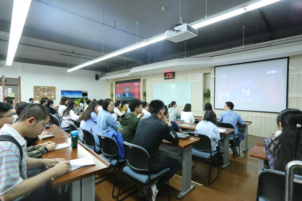 5月4日上午10:00,beats365亚洲体育投注师生在新主楼A622教室集中收看纪念马克思诞辰200周年大会,认真聆听习近平总书记在纪念大会上的重要讲话。学院分党委书记刘志新,教工和学生支部书记,教师和学生代表等80余名师生一同观看直播。