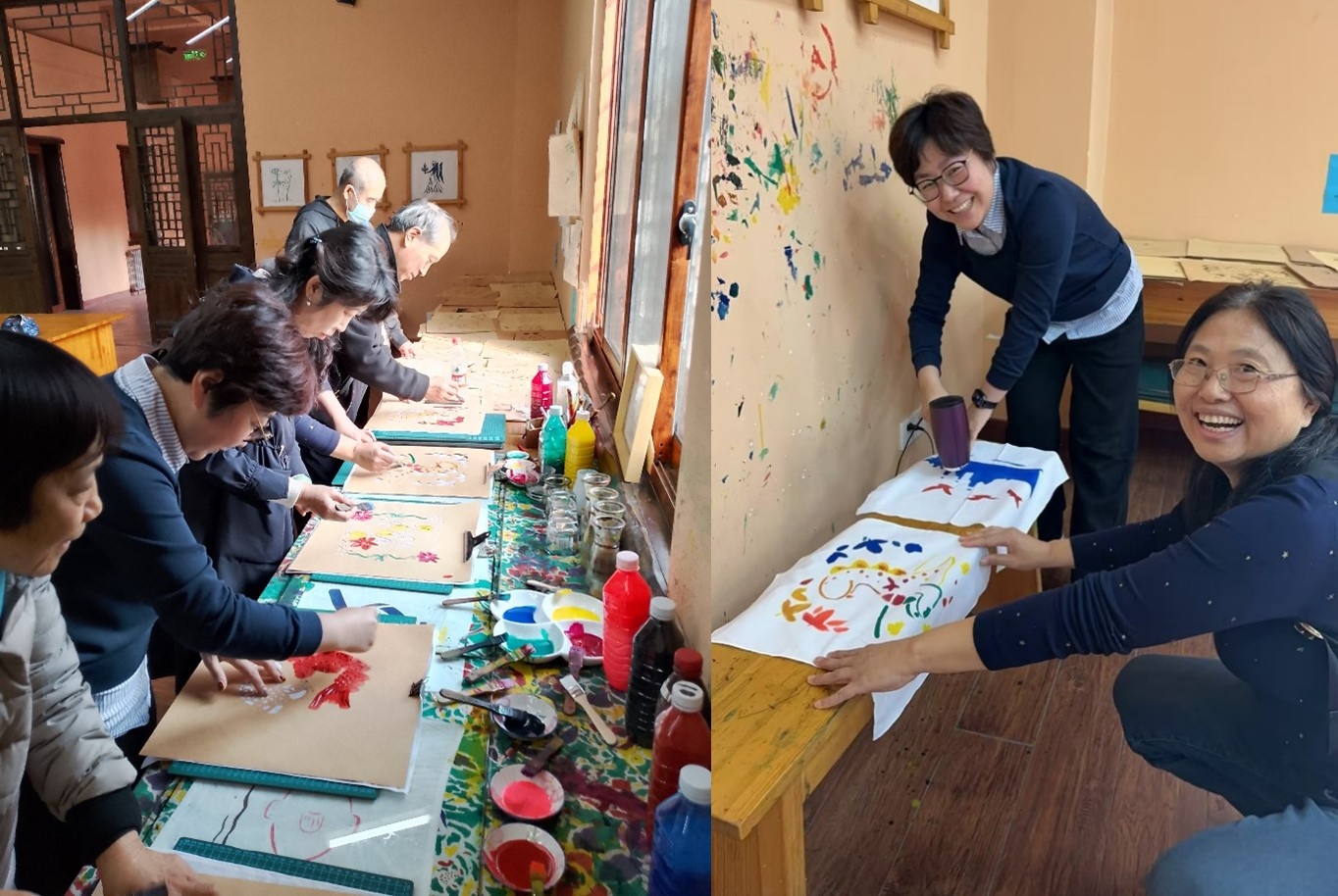 在古北水镇的扎染坊中,教职工们纷纷动手,亲自制作扎染作品,感受这一历史悠久的手工艺所带来的乐趣。通过这一体验,大家不仅提升了动手能力,也加深了对传统文化的理解。正午时分,关工委老师与青年老师在古北水镇的阳光下,分享经管学院教学科研和管理工作中的心得体会,气氛温馨而融洽。