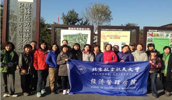 第一次健步走活动选择在奥林匹克森林公园。11月19日下午,在学院工会主席谢岚的带领下,经管学院23名教师以极大的热情参加了此次活动。奥林匹克森林公园是距离北京市民最近的森林公园。它占地面积680公顷,已经成为北京市民的的一个户外大氧吧,很多运动爱好者都前来跑步、健身。一进公园,就看到了高大的乔木和五彩灌木绵延数公里,犹如置身于一片宜人清新的绿洲中。我们遇到了很好的天气,天空晴朗、也没有风,冬日的阳光暖暖的照在身上,公园里的空气十分清新。大家沿着公园里的健身步道一路走下去,一边散步、一边欣赏风景、一边开心地交流着。大家都认为平时走路太少、晒太阳也少,影响了身体健康,健步走是一种极好的锻炼方式,大家都很愿意参与。森林公园分为南园和北园,大家用了两个半小时兴致勃勃地走完了南北两园全程10.5公里的路程,虽然感到有些累,但精神很愉悦。