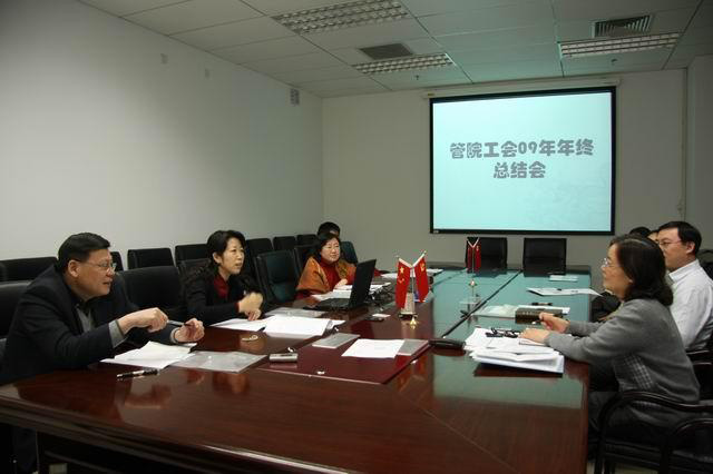 最后,刘书记对我院工会在2009年的工作进行了总结发言:首先,他对我院工会取得北京市工会“模范教职工之家”称号表示祝贺,对工会的各位委员的辛勤工作表示了充分的肯定。接着,他对我院工会明年的工作提出了要求,希望我院工会要认真学习落实党的十七大精神,认真领会学校2009年度工会工作会议的工作要点,围绕学校的中心工作,发挥工会组织、引导、服务、维权的四项职能,积极探索进一步加强民主管理的新形势,积极按照和谐校园建设的目标做好服务职工的工作,凝聚人心,提高工会各种活动的工会会员参与率,为学院的建设发展做出贡献。然后,与工会委员详细讨论了2010年的工会工作重点。