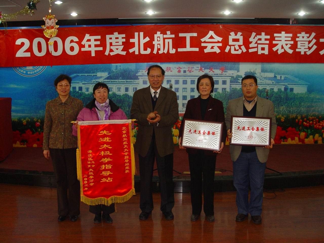 2007年1月23日,经管学院工会双喜临门:在思源楼召开的2006年度北航工会总结表彰大会上,我院工会作为北航推选出的唯一基层工会代表,获得了北京市教育工会颁布的“先进工会集体”荣誉;同时,我院工会还正式通过了学校评审、获得北航“模范教职工之家”荣誉称号。在这次评审会上,经管学院工会同时还获得了“2006年度工会活动组织一等奖”和“2006年度工会各项竞赛活动第八名”两个奖牌以及“2006年度工会工作创新奖”和“2006年度工会宣传工作先进单位”两张奖状;短短两个小时的表彰会上,七次派代表上台领奖,取得了多年来最丰硕的成果。北航校长李未和北航工会主席纪素菊为获奖单位颁奖;经管学院党总支李清书记、工会主席高志红老师及院工会全体委员参加了表彰大会。