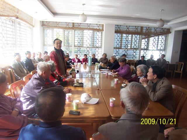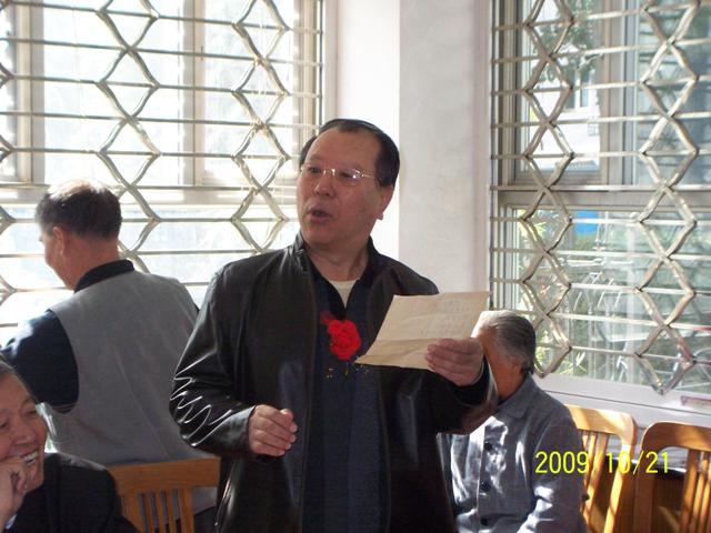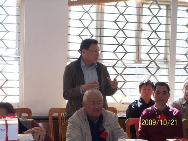 在这热烈的气氛下,领导们给寿星、钻石婚、金婚夫妇和老人们送上最美好的祝福。刘志新书记说:“在喜过重阳节之际,代表经管学院党委和院领导向全体老同志、八位寿星和两对夫妇表示最诚挚的祝贺。经管学院退休教工党支部在离退休党委领导下积极开展活动,在关心下一代、活动创新、集体凝聚力方面都表现突出,为学院争了光。经管学院离退休同志对学院领导对大家的支持是满意的,我听了以后,既有动力又有压力,我们决定在通货膨胀的今天,加大一点支持力度,并从今年开始”。大家用热烈的掌声表示对领导关心的感谢。