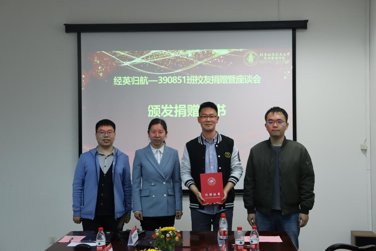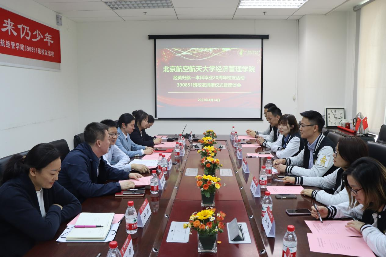 随后,在新主楼A612举行beats365亚洲体育投注390851班校友捐赠仪式暨座谈会。beats365亚洲体育投注党委书记郑海涛,北航计划财务部副部长、北航教育基金会秘书长颜江芬,学院党委副书记高超,学院校友发展中心主任胡鹤,分团委书记白雪,专职辅导员衣萌和职业发展中心叶枝俏参加捐赠仪式暨校友座谈会。