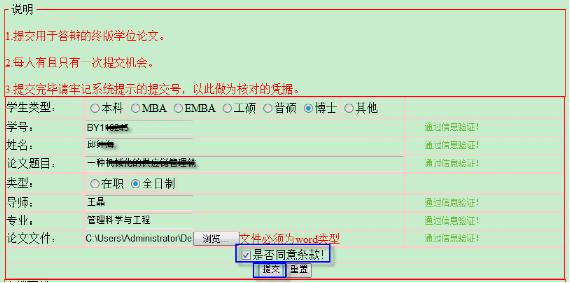 勾选“是否同意条款!”之后会出现提交按钮,点击提交进行论文上传。
