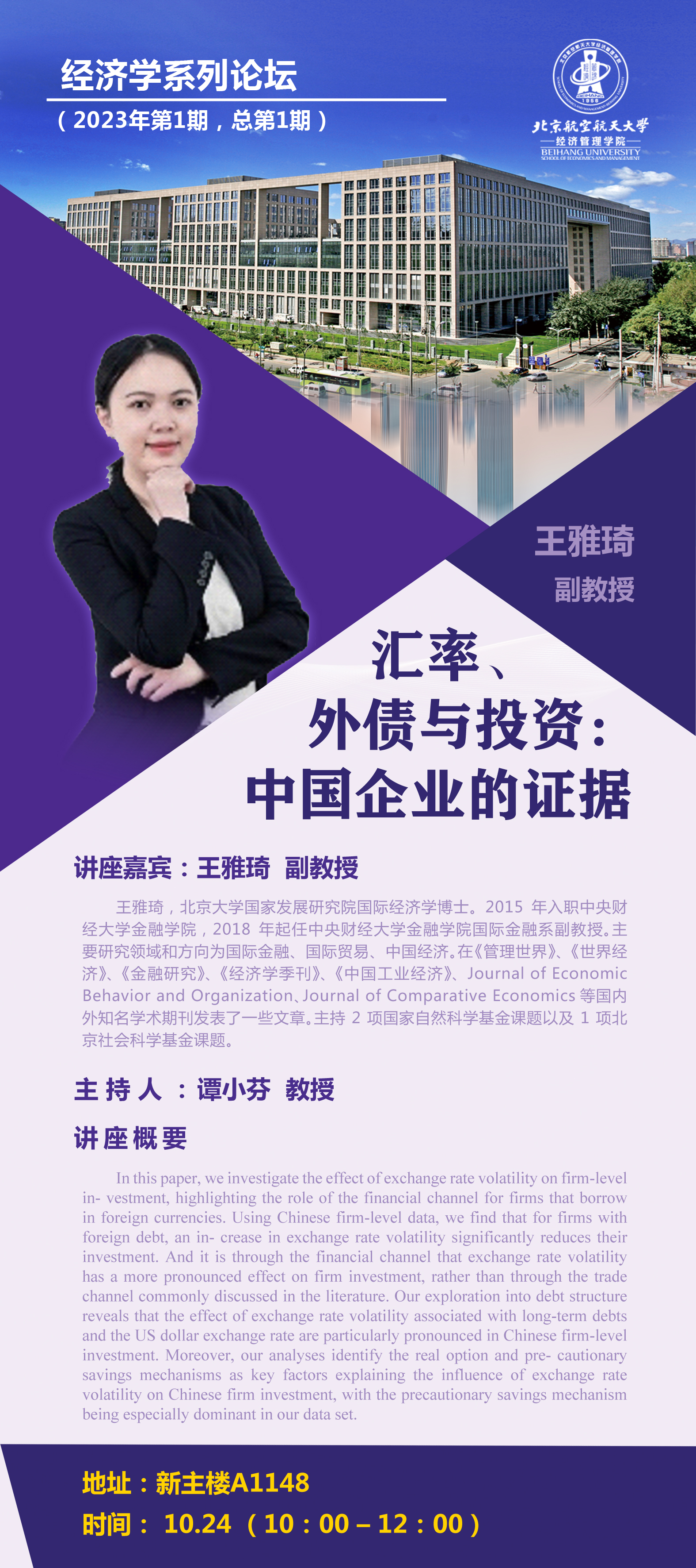 【经济学系列论坛】汇率、外债与投资:中国企业的证据