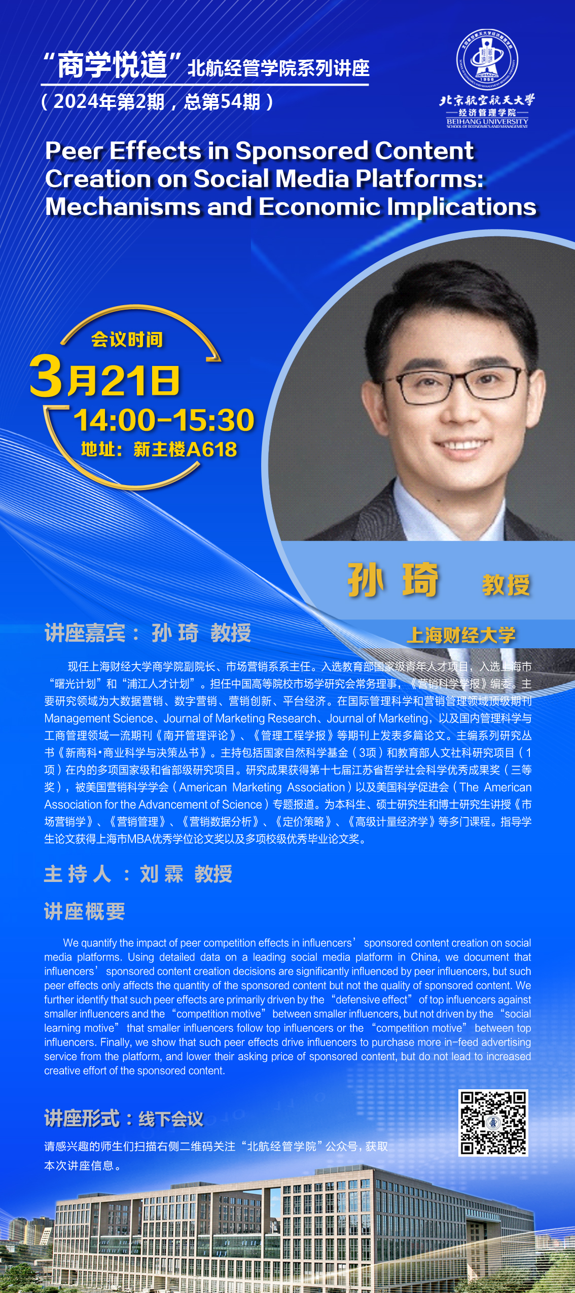 讲座嘉宾:孙琦 教授,上海财经大学
