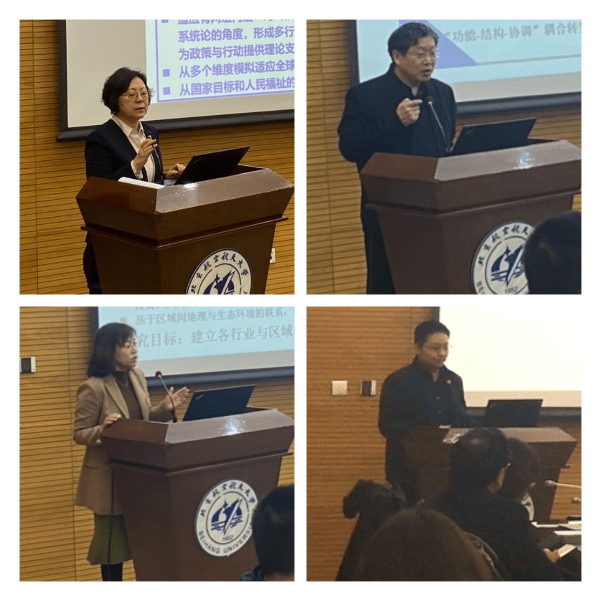 项目首席科学家范英教授介绍了项目的基本情况,包括项目概要、项目任务分解情况、项目实施技术路线、项目主要任务单元分工接口、项目阶段目标及考核方式、项目组织管理保障措施等方面。随后,课题一负责人南京师范大学副校长田立新教授、课题二负责人复旦大学发规处处长吴力波教授、课题三负责人北航经管学院院长范英教授、课题四负责人浙江大学公共管理学院副院长谭荣教授分别对课题实施方案进行了详细的报告。与会专家认真听取了汇报,对项目的研究思路和实施方案给予肯定,并从不同角度对项目的推进落实提出了宝贵的意见和建议。