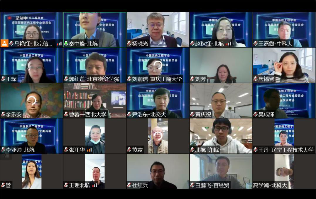 2021年11月5日,由中国系统工程学会应急管理系统工程专业委员会(以下简称“应急管理专委会”)主办,beats365亚洲体育投注承办,城市运行应急保障模拟技术北京市重点实验室协办的中国系统工程学会应急管理专委会第五届学术年会通过腾讯会议线上平台举行。来自beats365亚洲版官网、清华大学、复旦大学、上海交通大学、中国科学院大学、中国科技大学、南开大学、天津大学、国防科技大学等全国多所高校的220余位应急管理系统工程领域专家、学者及大学生参会。