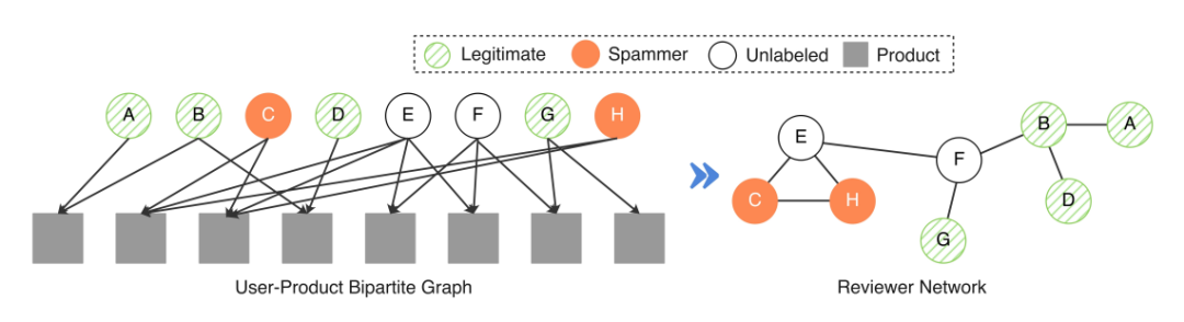 因此,虚假评论一直是维护公平和可信赖在线环境的主要威胁。据估计,像Yelp这样的在线评论平台中含有16%的虚假评论,大量的虚假评论会伤害用户对平台的信任。考虑到虚假评论和虚假评论者可能带来的危害,许多在线平台已经推出了过滤系统,来删除可疑的虚假评论并停用相关的虚假评论账户。但大多数现有的系统仍然严格依赖基于规则的过滤器,无法检测和阻止所有类型的虚假评论。特别是当虚假评论者的策略不断进化时,个体用户甚至可以巧妙地伪装他们在平台上的虚假评论行为,这就会使得基于规则的检测方法的局限性增大。
