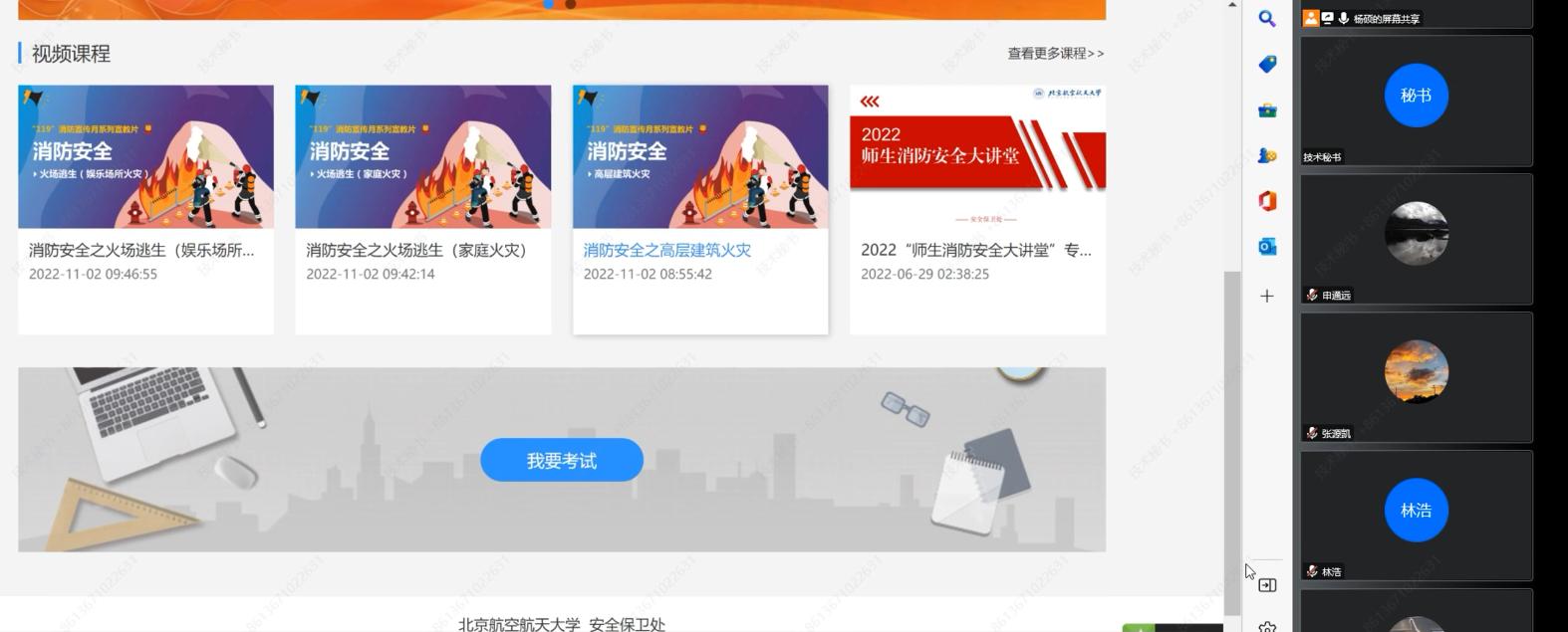 在本次培训过程中,依照学校通知要求,同时组织了实验室师生登录学校的师生安全培训系统在线学习《消防安全之高层建筑火灾》《消防安全之火场逃生》等消防警示教育片。