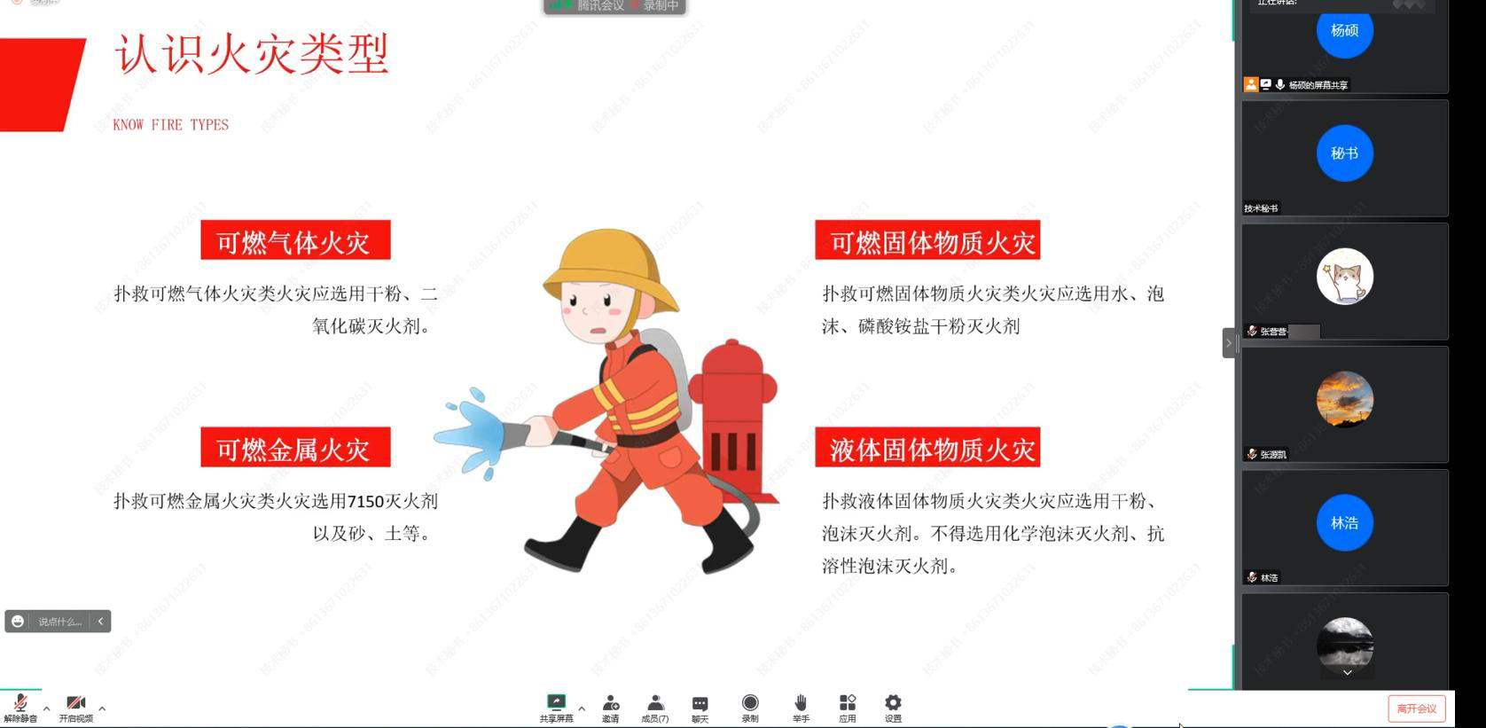 经济管理实验中心按照学校《关于组织开展2022年度“119”消防宣传月活动的通知》要求,于2022年11月6日下午14点30分,通过线上腾讯会议形式,为实验室师生宣传普及防火、灭火、应急疏散常识和查找、消除火灾隐患的方法等重点内容,本次培训由杨硕老师主讲。