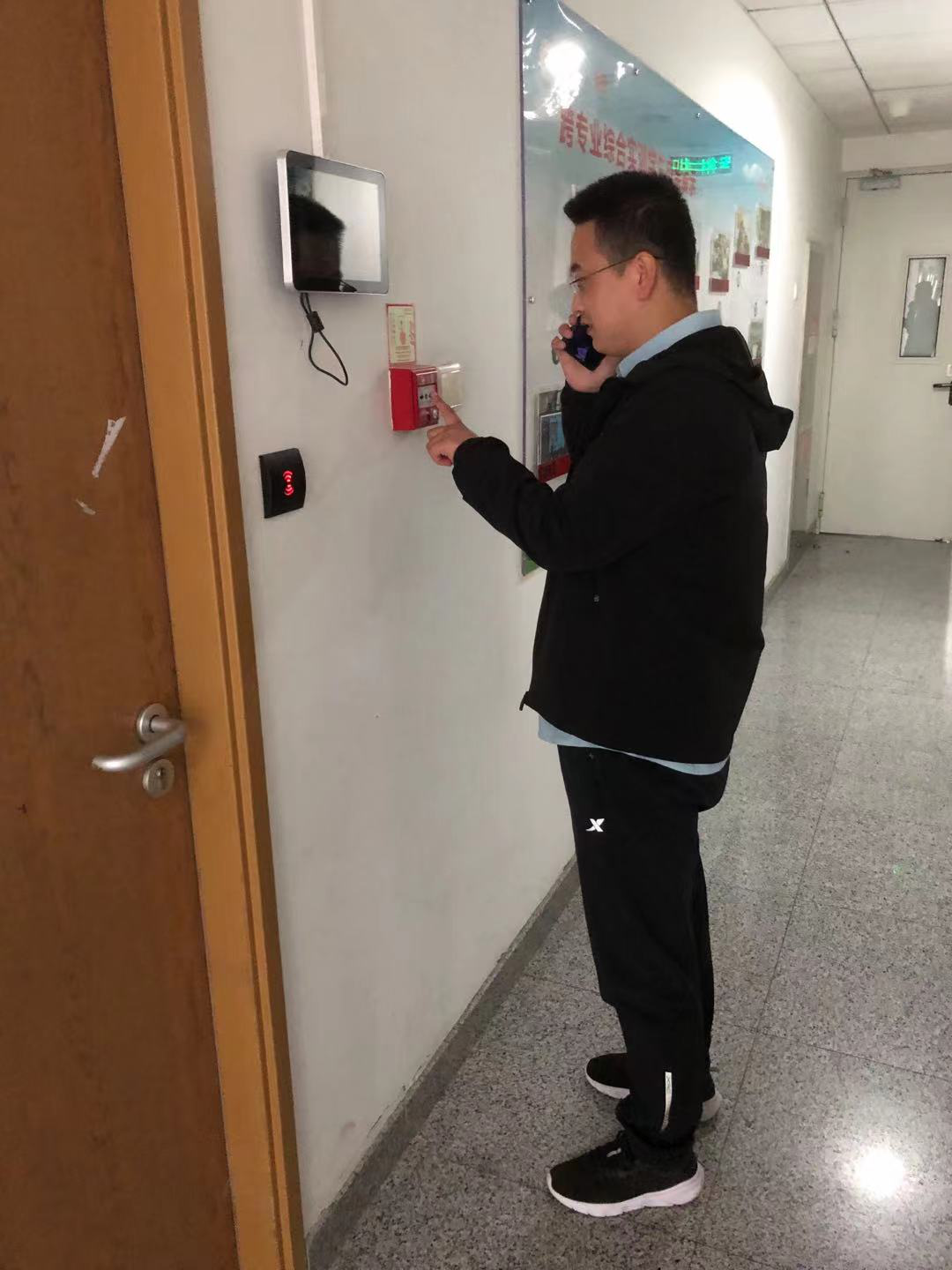 (1)由报警员苏想忠模拟发现A702实验室有火情后,第一时间按动楼道手报,同时拿起电话拨打物业中控室电话“82339090”报警:新主楼A座702实验室发生火情,火势较大,请速来扑救。