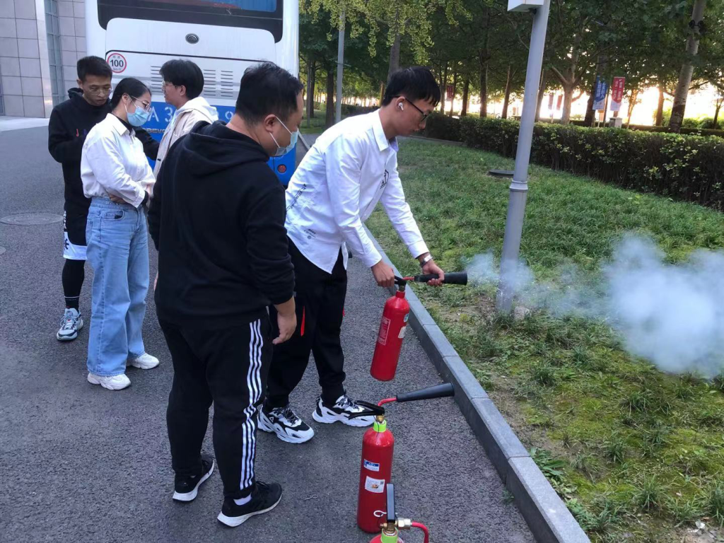 (5)各副组长组织讲解灭火器使用方法并示范,现场同学也亲身体验了灭火器的使用。