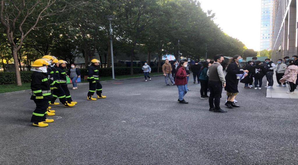 (7)疏散演练完成,总指挥曹明宣布消防演练结束。