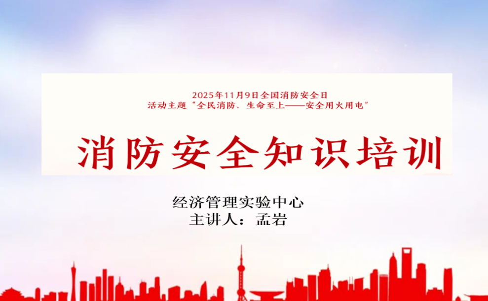 今年11月9日是第34个全国消防日,按照学校“消防宣传月”活动要求,结合本单位安全风险特征开展针对性的火灾风险隐患科普教育和典型火灾案例警示教育。经济管理实验中心于2025年11月7日上午10点,通过在线腾讯会议的形式为实验中心各实验室的学生进行消防安全教育培训,此次培训由实验中心孟岩老师主讲。