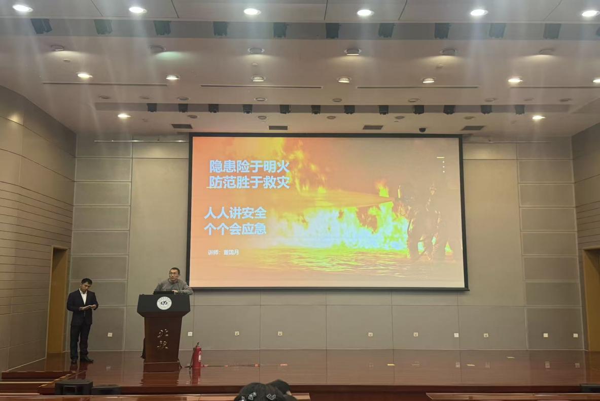 本次培训由外请的专家董国月主讲,培训紧扣高校实际情况,主讲人董国月结合多年消防培训经验,以“案例分析+实操演示”形式,讲解消防安全制度、隐患排查方法及逃生自救技巧。培训内容贴近实际、涉及到学校各类场景,针对消防安全检查工作进行了深入浅出、生动形象地讲解。