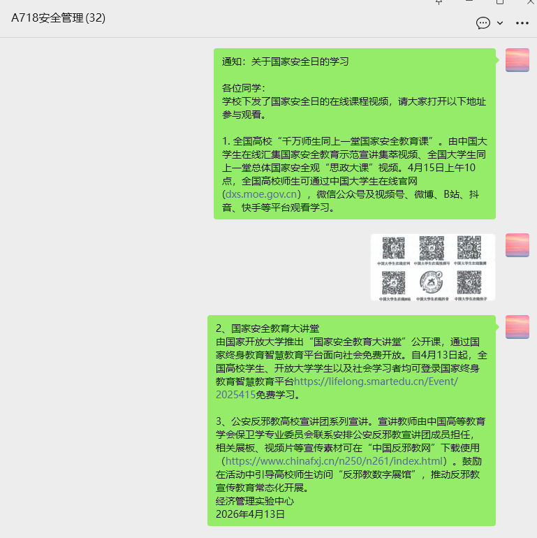 在第十一个“4·15”全民国家安全教育日到来之际,为深入贯彻总体国家安全观,增强学生的国家安全意识和素养,提升维护国家安全的责任感与能力,4月14日-4月15日期间,经济管理实验中心积极组织学生参与全民国家安全教育日系列主题活动,通过线上线下相结合的方式,开展了一场内容丰富、形式多样的国家安全宣传教育活动。