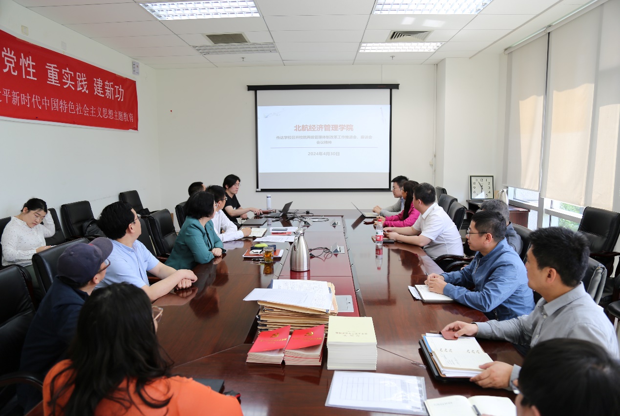 4月30日上午,beats365亚洲体育投注召开院校两级管理体制改革传达学习及研讨会。学院领导班子、专职组织员、党政办主任、全体教职工党支部书记参会,会议由郑海涛书记主持。