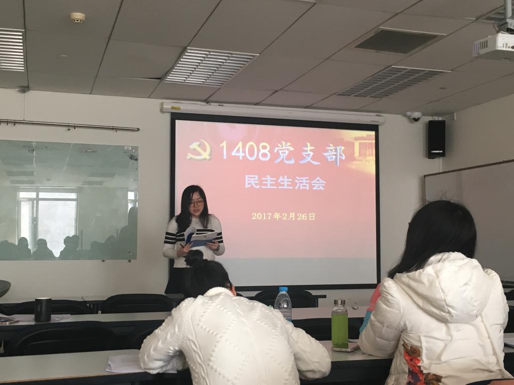 2017年2月26日下午3时,1408党支部在学院路校区召开民主生活会。会议由1408大班辅导员胡杰主持,经管学院王喜忠副书记出席会议并作指导,党支部全体成员参加会议。 本次民主生活会安排在北航党员寒假集中学习之后,是党支部成员消化知识、检讨自身、砥砺前进的一次重要会议。在党员学习交流环节中,九位党员针对集中学习分享了学习感悟。随后,王喜忠书记联系“全面从严治党”和“四个自信”,着重指出同学...
