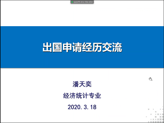 1708系列活动——出国留学经验分享2020年3月18日星期三14:00,1708“硬核学长学姐”系列活动第一场——“出国留学篇”顺利举办,活动以腾讯会议线上直播形式开展。本次活动由辅导员田莉娟主持,辅导员白雪、郭梁、1708同学参加,特别邀请了2016级学长董明睿、潘天奕,旨在为学弟学妹们中有出国意愿的同学答疑解惑。活动开始,田莉娟导员指出当前距离出国申请截至时间越来越近,为了让大家在家期间提高紧迫感...