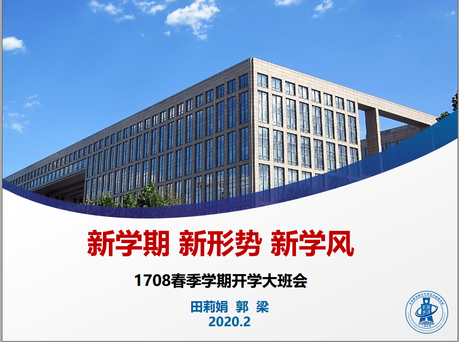 1708大班2020年春季学期收假大班会顺利举办2020年2月23日19:00,1708大班2020年春季学期收假大班会顺利举办。本次大班会以腾讯会议线上直播形式开展,主题为“新学期·新形势·新学风”,大班会由辅导员郭梁、田莉娟主持,1708大班全体同学参加了此次班会。郭梁导员首先向大家传达了学校学院关于疫情防控工作的具体要求,提醒大家每日按时填报防疫系统、在接到正式开学通知前不返京不返校、做好个人防护等。接...