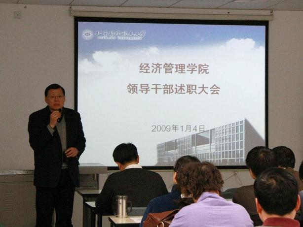 1月4日下午2:00,经管学院在新主楼A1048教室召开领导干部述职大会,学院全体教职工参加了本次会议。
