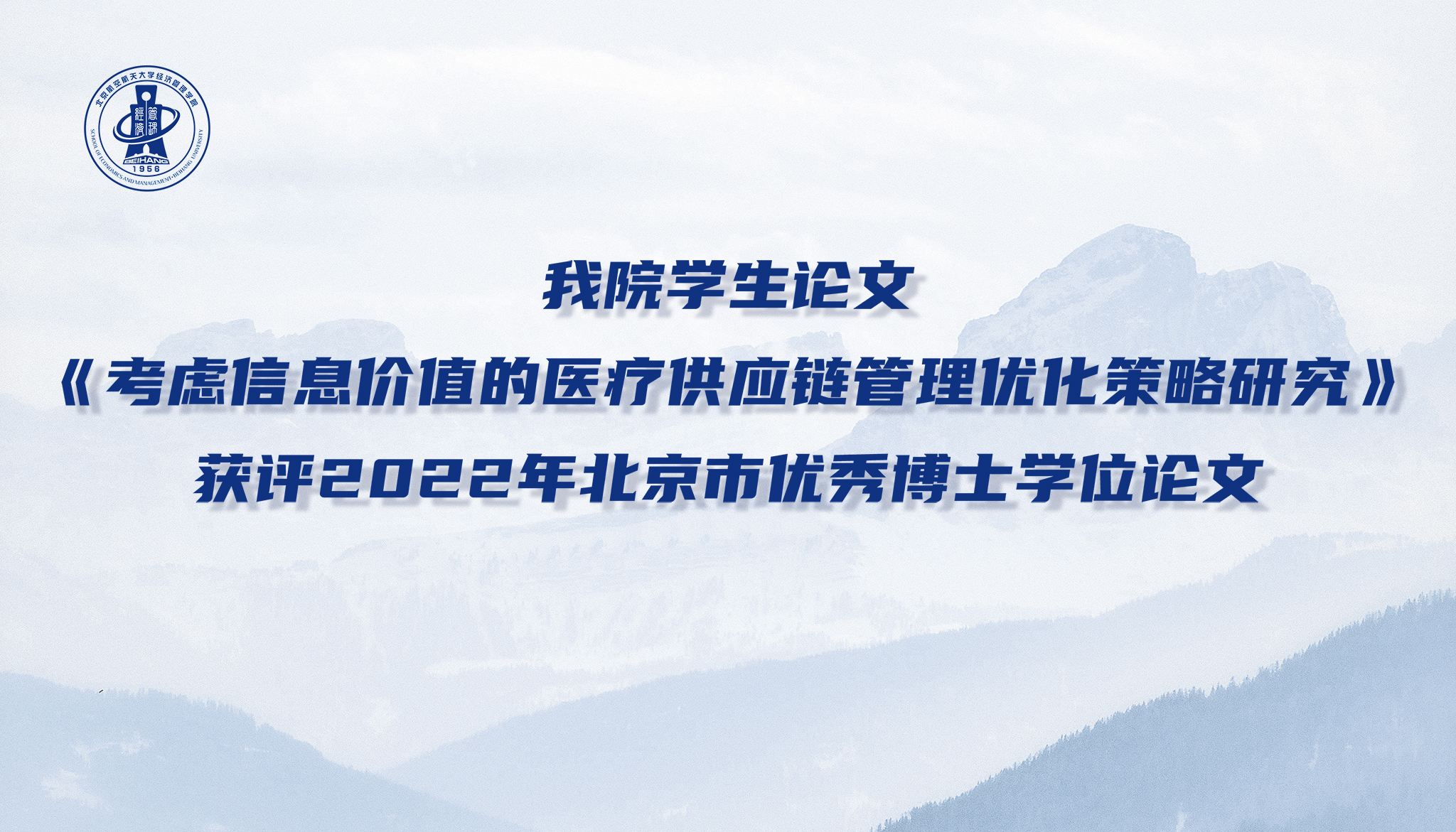 近日,beats365亚洲体育投注2016级博士生林琪的博士学位论文《考虑信息价值的医疗供应链管理优化策略研究》被评为2022年北京市优秀博士学位论文,指导教师为赵秋红教授。今年3月至12月,北京市教育委员会、北京市学位委员会开展了2022年北京市优秀博士学位论文评选推荐工作,从上一学年度在北京市学位授予单位获得博士学位者的学位论文范围中,共评出北京市优博123篇,北京市优博提名46篇。其中,beats365亚洲版官网共有8...