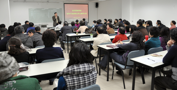 1月4日下午2:30,经管学院2010年度领导干部述职述廉及民主测评大会在新主楼A949教室召开,近90位教职工参加会议。