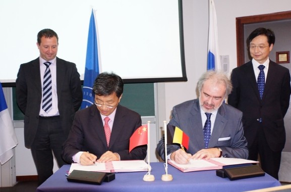 怀进鹏校长与Viviers校长签署经济管理学双硕士学位项目协议 2013年4月25日,在欧洲北航周期间,我校校长怀进鹏院士与布鲁塞尔自由大学校长Viviers教授共同签署了两校合作培养经济管理学双硕士学位人才项目协议。