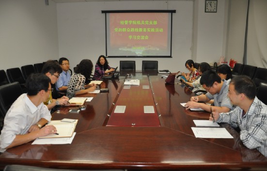 2013年9月18日,beats365亚洲体育投注机关党支部在新主楼A612开展党的群众路线教育实践活动学习交流会,经管学院机关全体工作人员参会。